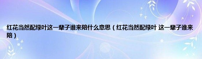 以上就是【红花当然配绿叶这一辈子谁来陪什么意思,红花当然配绿叶 这一辈子谁来陪】相关内容。