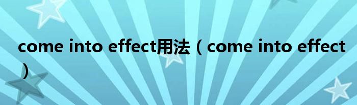 大家好,小问来为大家解答以上问题。come into effect用法,come into effect这个很多人还不知道,现在让我们一起来看看吧!