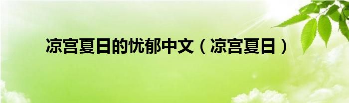 大家好,小问来为大家解答以上问题。凉宫夏日的忧郁中文,凉宫夏日这个很多人还不知道,现在让我们一起来看看吧!