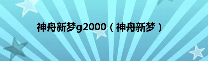 以上就是【神舟新梦g2000,神舟新梦】相关内容。