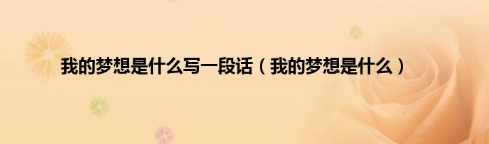 以上就是【我的梦想是什么写一段话,我的梦想是什么】相关内容。
