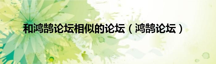 大家好,小问来为大家解答以上问题。和鸿鹄论坛相似的论坛,鸿鹄论坛这个很多人还不知道,现在让我们一起来看看吧!