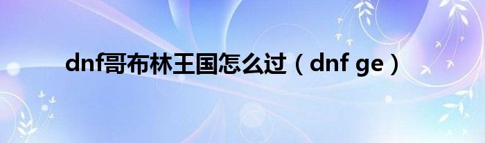 大家好,小问来为大家解答以上问题。dnf哥布林王国怎么过,dnf ge这个很多人还不知道,现在让我们一起来看看吧!