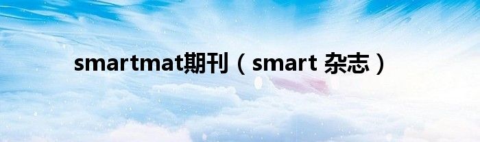 大家好,小问来为大家解答以上问题。smartmat期刊,smart 杂志这个很多人还不知道,现在让我们一起来看看吧!
