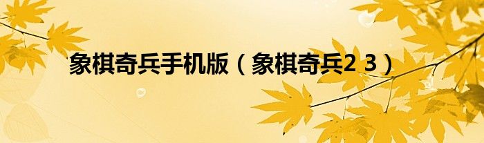 大家好,小问来为大家解答以上问题。象棋奇兵手机版,象棋奇兵2 3这个很多人还不知道,现在让我们一起来看看吧!