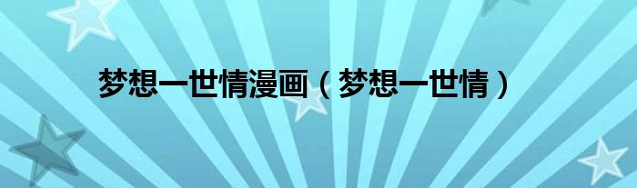 大家好,小问来为大家解答以上问题。梦想一世情漫画,梦想一世情这个很多人还不知道,现在让我们一起来看看吧!