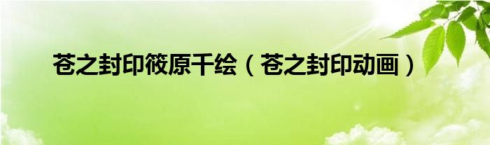 以上就是【苍之封印筱原千绘,苍之封印动画】相关内容。