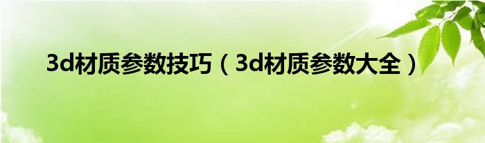 大家好,小问来为大家解答以上问题。3d材质参数技巧,3d材质参数大全这个很多人还不知道,现在让我们一起来看看吧!