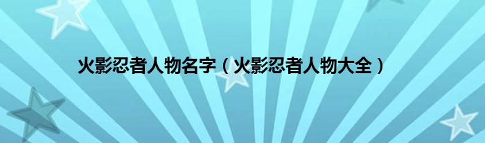 以上就是【火影忍者人物名字,火影忍者人物大全】相关内容。