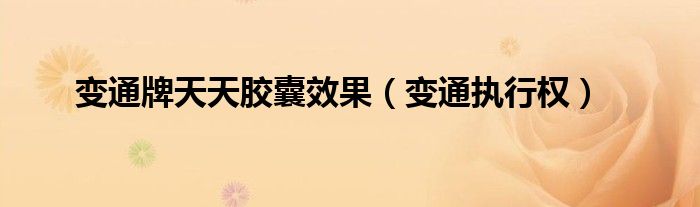 大家好,小问来为大家解答以上问题。变通牌天天胶囊效果,变通执行权这个很多人还不知道,现在让我们一起来看看吧!