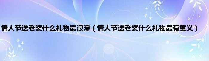 以上就是【情人节送老婆什么礼物最浪漫,情人节送老婆什么礼物最有意义】相关内容。