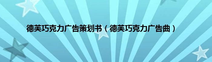 大家好,小问来为大家解答以上问题。德芙巧克力广告策划书,德芙巧克力广告曲这个很多人还不知道,现在让我们一起来看看吧!