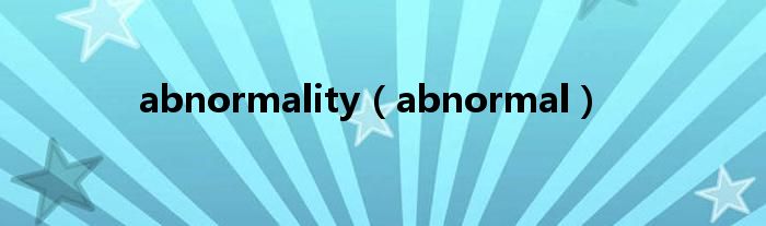 大家好,小问来为大家解答以上问题。abnormality,abnormal这个很多人还不知道,现在让我们一起来看看吧!