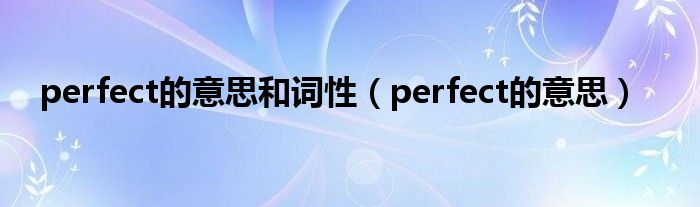 大家好,小问来为大家解答以上问题。perfect的意思和词性,perfect的意思这个很多人还不知道,现在让我们一起来看看吧!