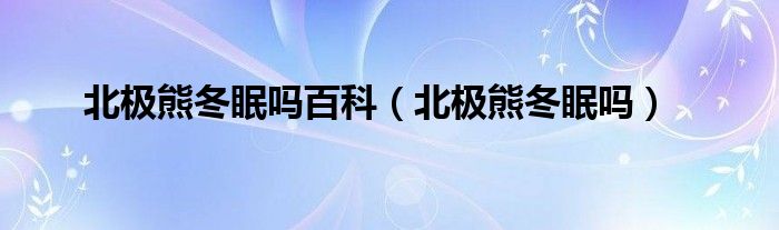 以上就是【北极熊冬眠吗百科,北极熊冬眠吗】相关内容。