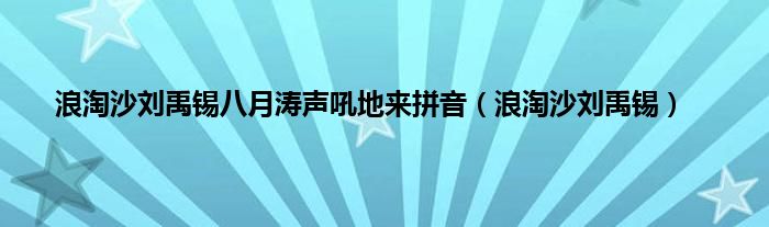 以上就是【浪淘沙刘禹锡八月涛声吼地来拼音,浪淘沙刘禹锡】相关内容。