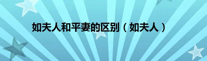 如夫人和平妻的区别(如夫人)
