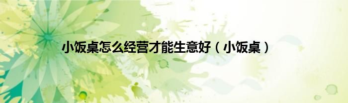以上就是【小饭桌怎么经营才能生意好,小饭桌】相关内容。