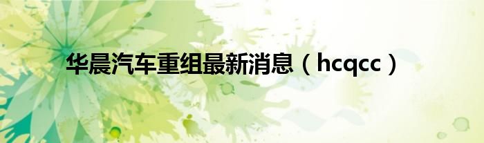 大家好,小问来为大家解答以上问题。华晨汽车重组最新消息,hcqcc这个很多人还不知道,现在让我们一起来看看吧!