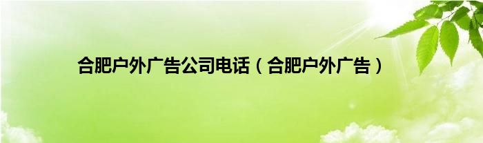 以上就是【合肥户外广告公司电话,合肥户外广告】相关内容。