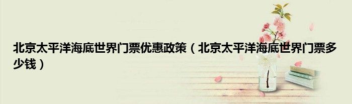 大家好,小问来为大家解答以上问题。北京太平洋海底世界门票优惠政策,北京太平洋海底世界门票多少钱这个很多人还不知道,现在让我们一起来看看吧!