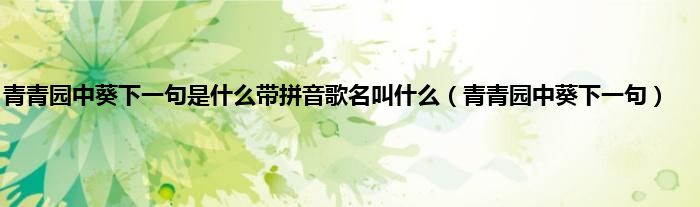 大家好,小问来为大家解答以上问题。青青园中葵下一句是什么带拼音歌名叫什么,青青园中葵下一句这个很多人还不知道,现在让我们一起来看看吧!
