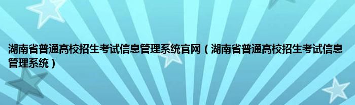 大家好,小问来为大家解答以上问题。湖南省普通高校招生考试信息管理系统官网,湖南省普通高校招生考试信息管理系统这个很多人还不知道,现在让我们一起来看看吧!