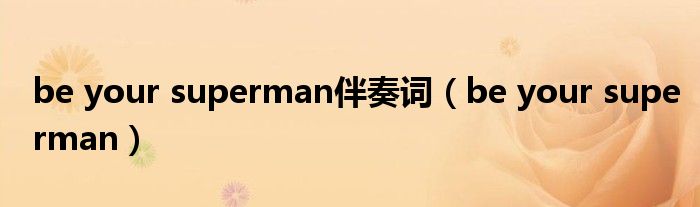 大家好,小问来为大家解答以上问题。be your superman伴奏词,be your superman这个很多人还不知道,现在让我们一起来看看吧!