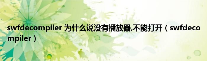 大家好,小问来为大家解答以上问题。swfdecompiler 为什么说没有播放器,不能打开,swfdecompiler这个很多人还不知道,现在让我们一起来看看吧!