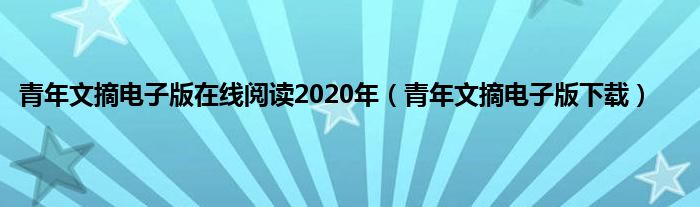 以上就是【青年文摘电子版在线阅读2020年,青年文摘电子版下载】相关内容。