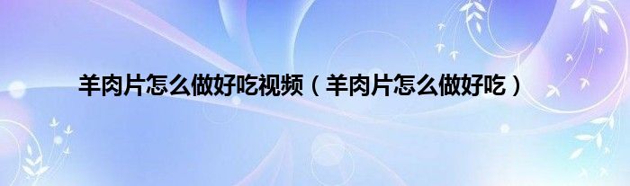 以上就是【羊肉片怎么做好吃视频,羊肉片怎么做好吃】相关内容。