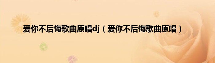 大家好,小问来为大家解答以上问题。爱你不后悔歌曲原唱dj,爱你不后悔歌曲原唱这个很多人还不知道,现在让我们一起来看看吧!