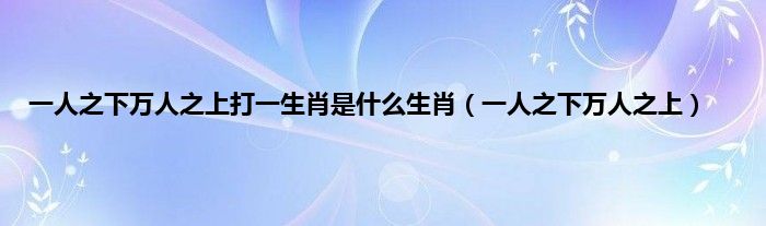 大家好,小问来为大家解答以上问题。一人之下万人之上打一生肖是什么生肖,一人之下万人之上这个很多人还不知道,现在让我们一起来看看吧!