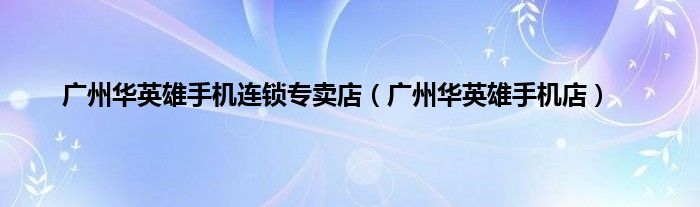 广州华英雄手机连锁专卖店(广州华英雄手机店)