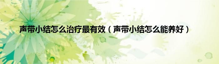 以上就是【声带小结怎么治疗最有效,声带小结怎么能养好】相关内容。