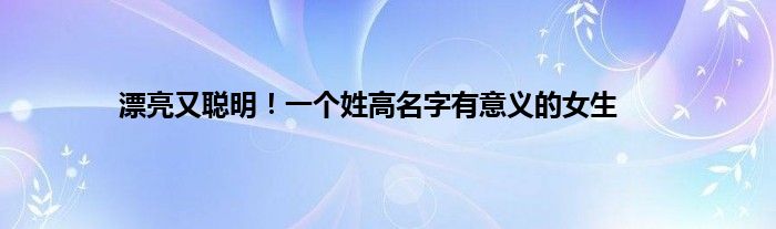 本文漂亮又聪明!一个姓高名字有意义的女生到此分享完毕,希望对大家有所帮助。