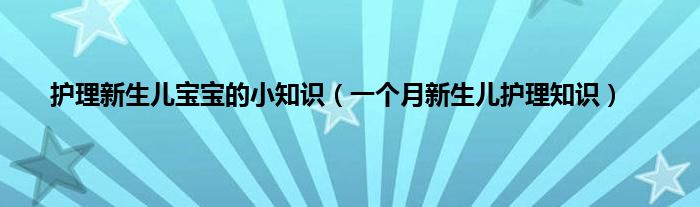 最佳答案大家好,护理新生儿宝宝的小知识,一个月新生儿护理知识很多人还不知道,现在让我们一起来看看吧!1、 一个月新生儿的护理知识包括:1。2、环境护理。3、保证新生儿所处环境的温度和湿度适宜,注意环境的清洁和空气的流通。4、睡觉时也要注意给新生儿一个安静的环境。5、2.饮食护理。6、给新生儿喂奶...