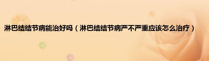 淋巴结结节病能治好吗(淋巴结结节病严不严重应该怎么治疗)