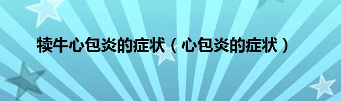 本文,犊牛心包炎的症状,心包炎的症状到此就分享完毕,希望对大家有所帮助。