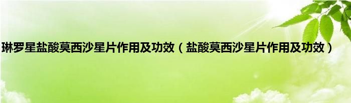 本文,琳罗星盐酸莫西沙星片作用及功效,盐酸莫西沙星片作用及功效到此就分享完毕,希望对大家有所帮助。