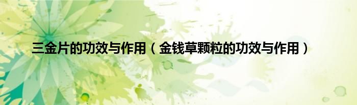 本文,三金片的功效与作用,金钱草颗粒的功效与作用到此就分享完毕,希望对大家有所帮助。