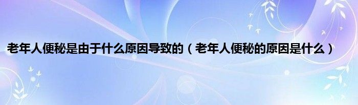 本文,老年人便秘是由于什么原因导致的,老年人便秘的原因是什么到此就分享完毕,希望对大家有所帮助。