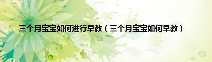 本文,三个月宝宝如何进行早教,三个月宝宝如何早教到此就分享完毕,希望对大家有所帮助。