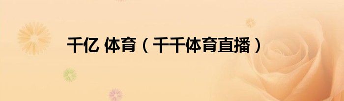 大家好,小问来为大家解答以上问题。千亿 体育,千千体育直播这个很多人还不知道,现在让我们一起来看看吧!