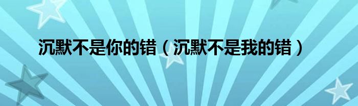 大家好,小问来为大家解答以上问题。沉默不是你的错,沉默不是我的错这个很多人还不知道,现在让我们一起来看看吧!