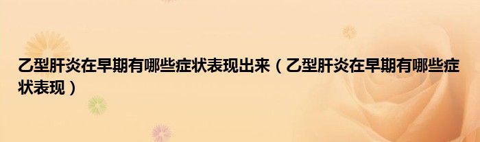 本文,乙型肝炎在早期有哪些症状表现出来,乙型肝炎在早期有哪些症状表现到此就分享完毕,希望对大家有所帮助。