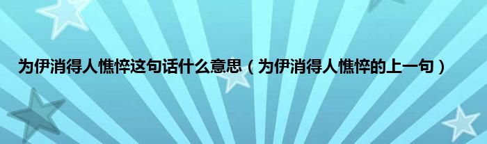 大家好,小问来为大家解答以上问题。为伊消得人憔悴这句话什么意思,为伊消得人憔悴的上一句这个很多人还不知道,现在让我们一起来看看吧!