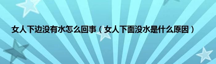 本文,女人下边没有水怎么回事,女人下面没水是什么原因到此就分享完毕,希望对大家有所帮助。
