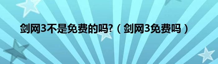以上就是【剑网3不是免费的吗?,剑网3免费吗】相关内容。