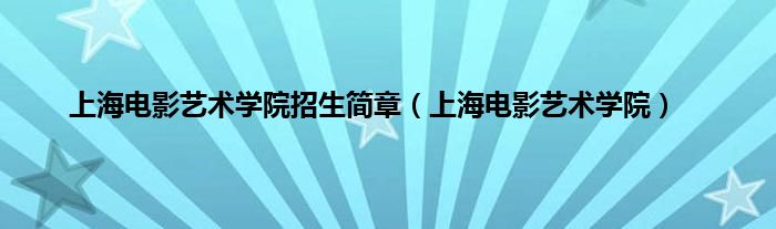 上海电影艺术学院招生简章(上海电影艺术学院)